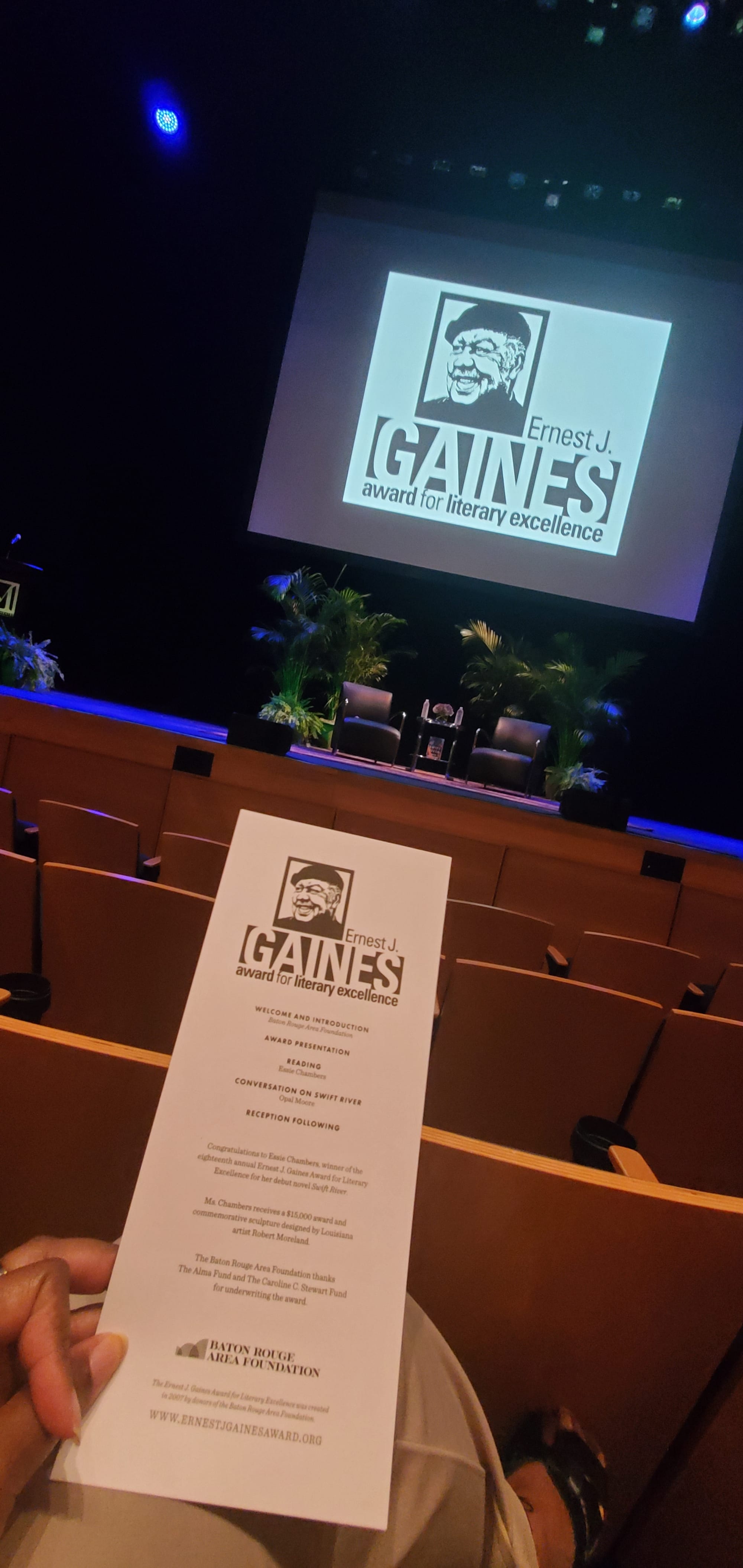 "Mr. Gaines' gaze upon Black life is unflinching, but never without tenderness," Moore said, "It is a privilege to sit here with Essie Chambers tonight, honoring the legacy of Ernest J. Gaines in the work and the spirit of a young Black woman writer who honors such complexity in her debut novel."