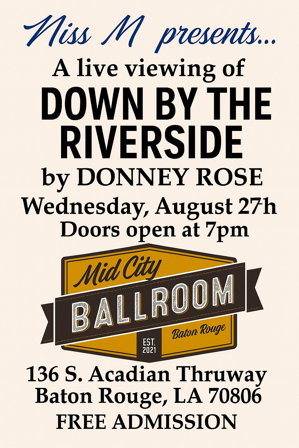 On Tuesday, August 26, the award-winning poet will present "Down By The Riverside" at the Adinkra Lounge, 1719 Oretha Castle Haley Blvd. in New Orleans, and Wednesday, Aug 27, at the Mid City Ballroom, 136 S. Acadian Thruway, in Baton Rouge. Both events are free and open to the public. This project continues Rose's larger work, The American Audit, a multimedia series of spoken word poetry historical accounts chronicling the nuances of Black American life. The collection is an artistic act of remembrance and resistance.