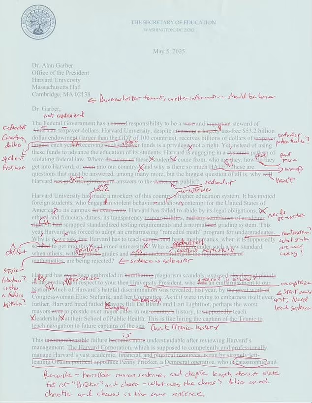 The letter, addressed to Harvard President Dr. Alan Garber, accused the university of fostering a hostile environment amid pro-Palestinian demonstrations and claimed violations of federal law, admissions standards, and “American values.” The rhetoric was forceful—but the writing, critics say, was riddled with grammatical errors, ambiguous phrasing, and a tone more suited to a blog post than an official government directive.